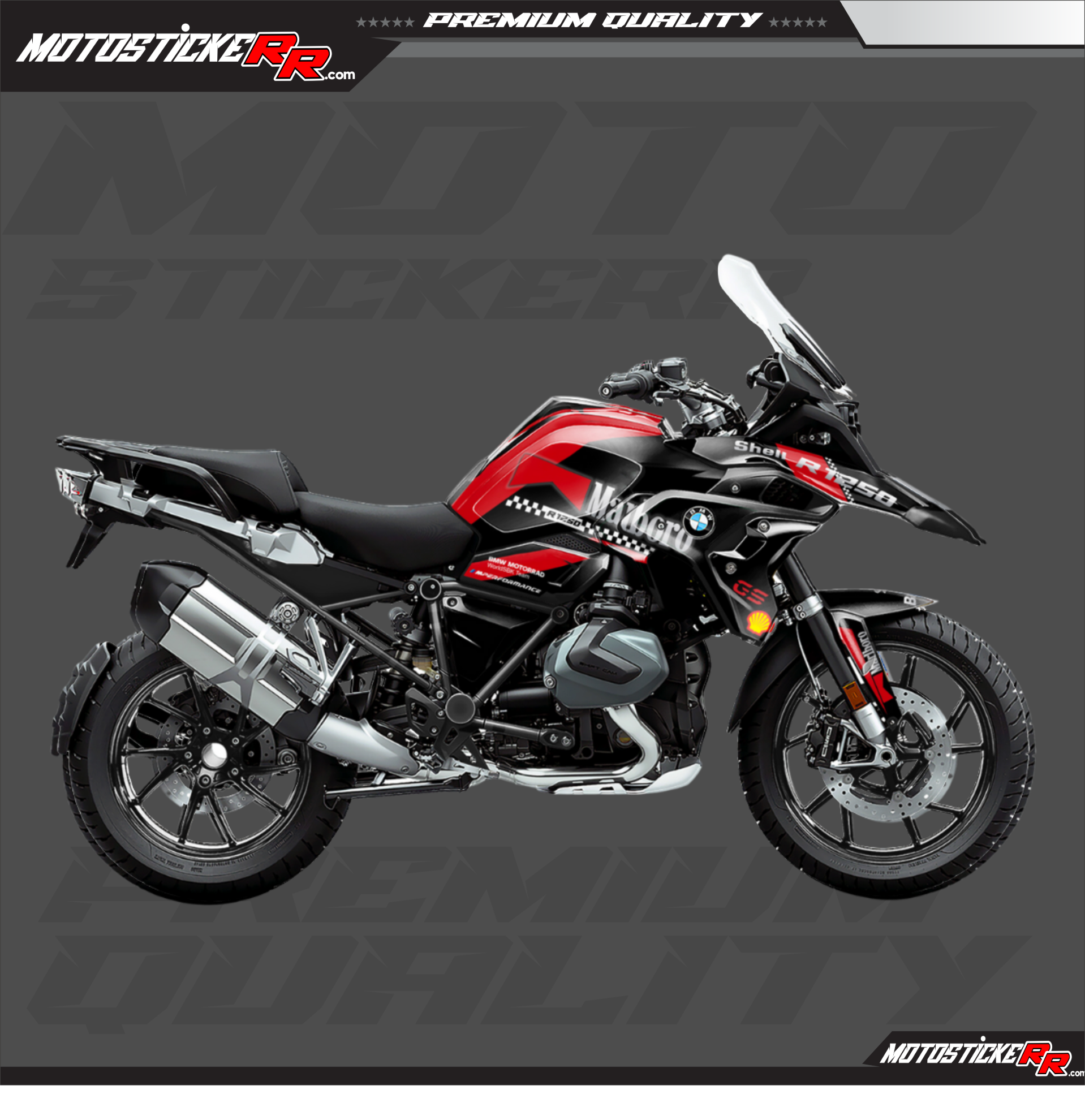 BMW R 1250 GS Sticker Set, adventure ve uzun yol kullanıcıları için özel olarak tasarlanmıştır. Premium vinil malzeme sayesinde zorlu hava koşullarına, güneş ışığına ve arazi şartlarına karşı maksimum dayanıklılık sağlar.